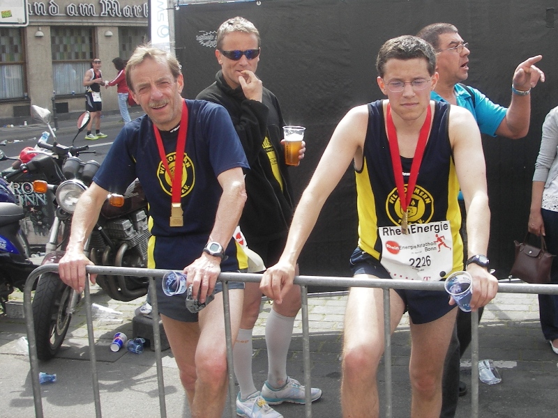 Dann endlich ist es wieder vorbei mit der Ruhe. Der Bonner Münsterplatz erwartet uns. Der letzte Kilometer beginnt und jubelnde Menschen begleiten uns. Dennoch der letzte Kilometer zieht sich in die Länge. Kopfsteinpflaster und ein paar kleinere Wellen, die in der zweiten Runde anlass bieten, die eine oder andere Sekunde verstreichen zu lassen. Aber man muss sich auch mal ein wenig feiern lassen. |