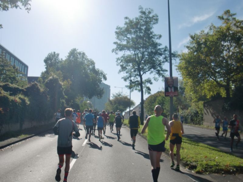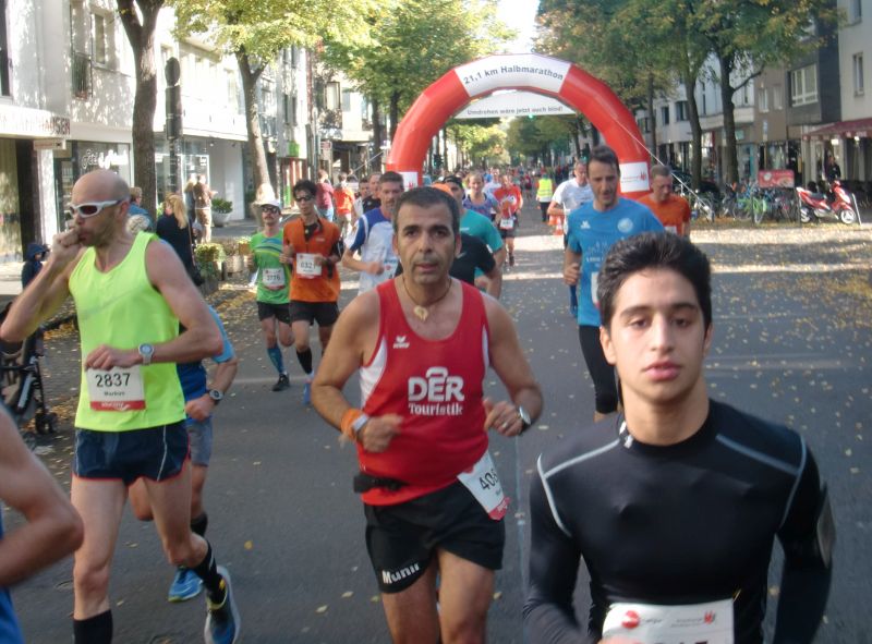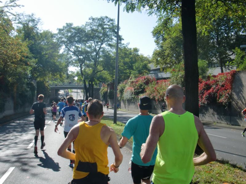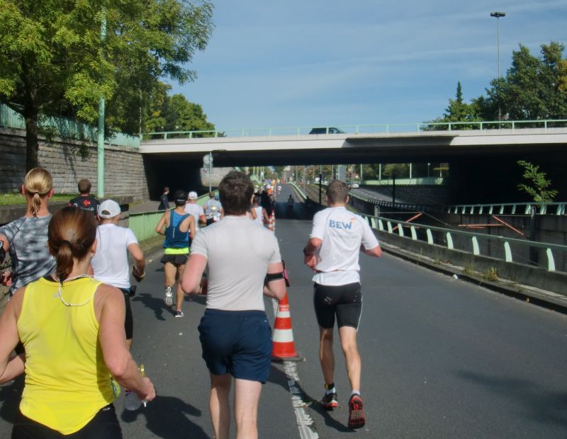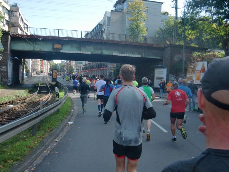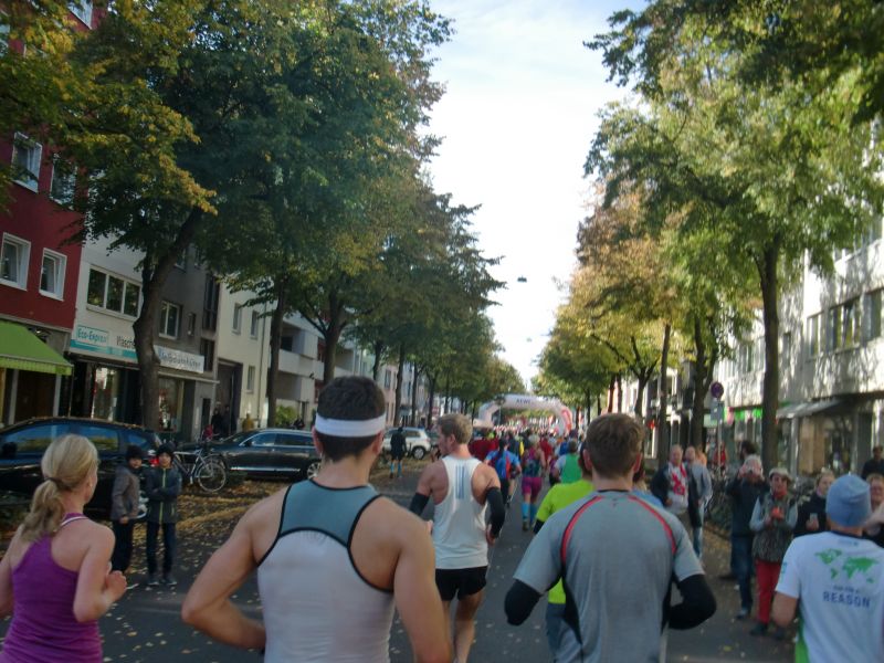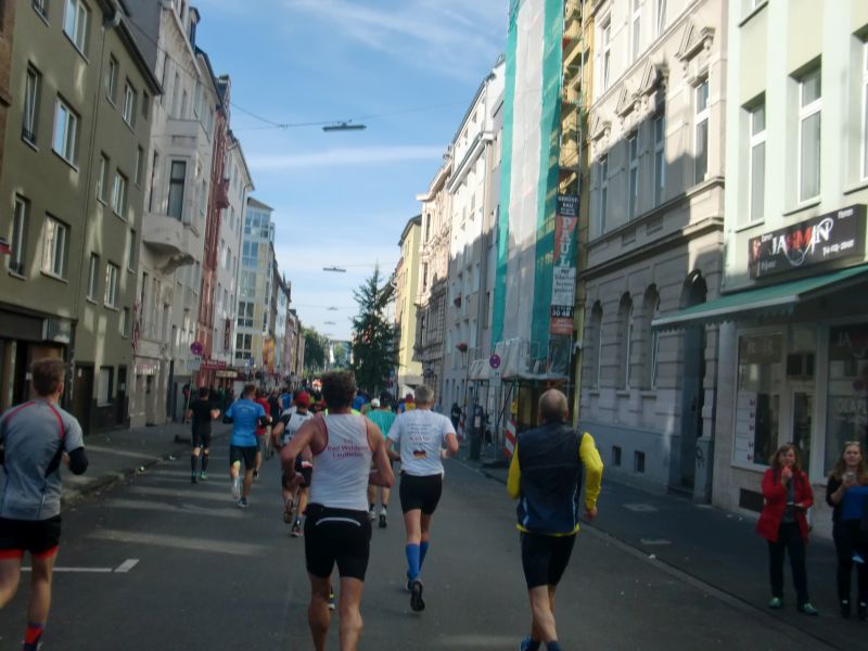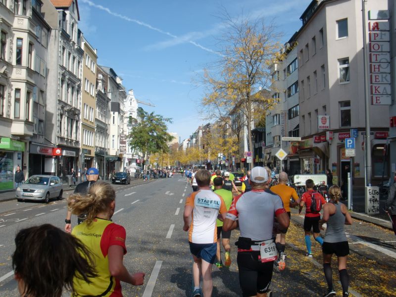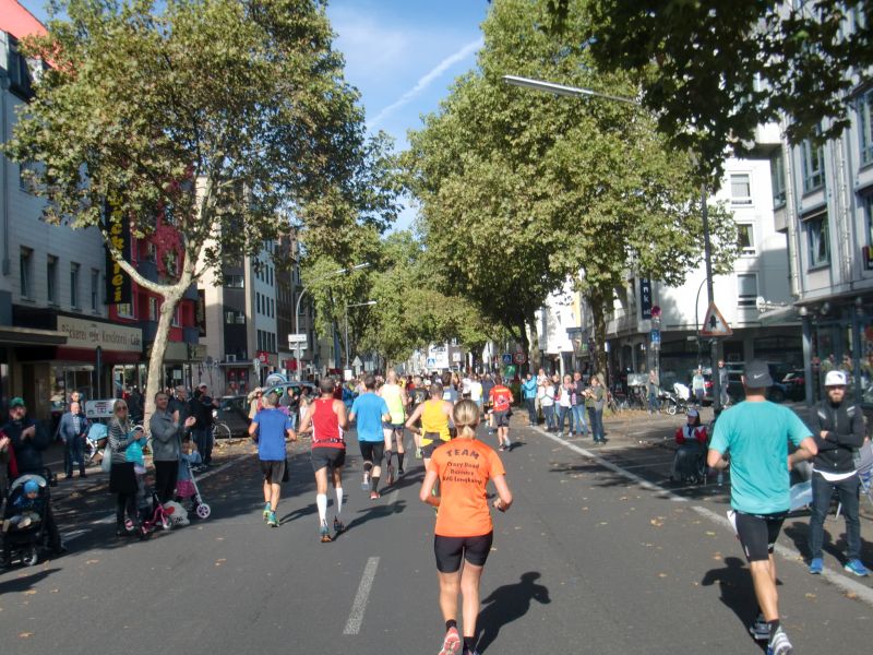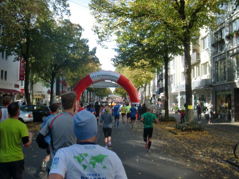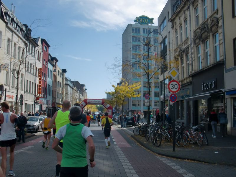 Wir erreichen die Halbmarathonmarke an der Dürener Straße wie geplant in 1:43h |