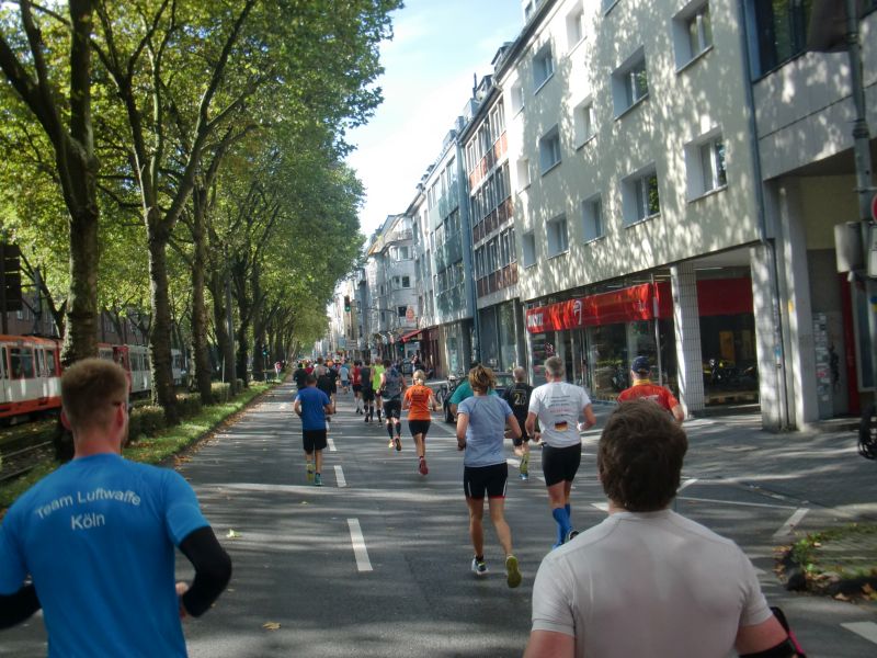 Noch eine letzte Schleife in die Außenbereiche. Nippes wartet auf uns, da entscheidet sich das heutige Rennen. Ab den 30ern geht es immer ans eingemachte. |