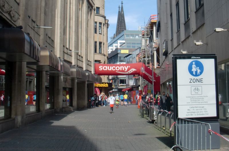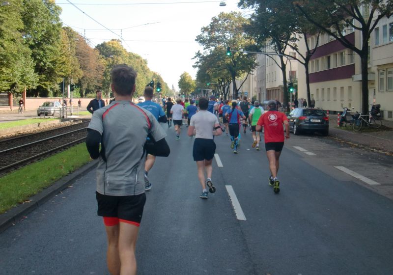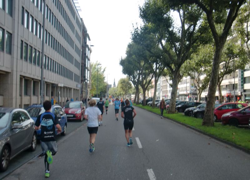 Via Bachemer Straße geht es auf die Universitätsstraße, einem weiteren Begegnungspunkt mit den schneller rennenden. Aber auf dem Rückweg sind wir dafür die schnelleren. |