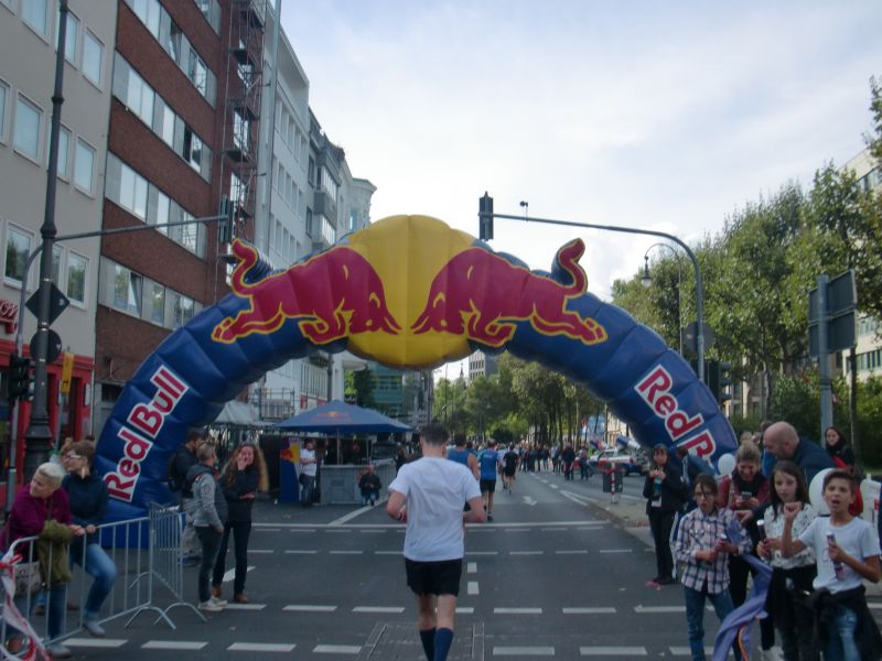 Gels nicht nehmen zu dürfen fordern nach diesem Tempo ihren Tribut. Ich lasse die beiden echten Pacemaker bei km 37 passieren. Dann bin ich nur noch als Wanderer unterwegs, ohne Ballon und Pacemakershirt. Die letzten 5 Kilometer sind von so vielen Krämpfen begleitet, dass der Genuss sich in Grenzen hält. Daher auch weniger Fotos. Ich selber lasse 10min auf den letzten 5km liegen. |