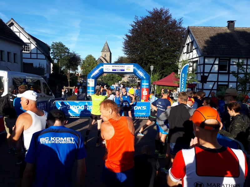 Fehler machen. Diesmal war der Marathon bei mehr las 30 Grad ein Lauf zu viel als Vorbereitung. Bei km 35 hat sich unter dem Fuß eine 20cm lange Hautfalte gebildet und ist aufgerissen, das wird bis zum TAR nicht mehr heilen und sicher viel Spaß machen. Auch die Sehne im linken Bein ist schlechter geworden. Eigentlich wusste ich das ja vorher, aber Monschau wollte ich unbedingt laufen. |