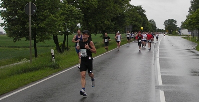 Auf dem Rückweg hier bei Sarching kämpfen alle gegen einen unangenehmen Gegenwind, der uns bis ins Ziel begleiten sollte. Schnell verabschiede ich mich von meiner Zeitentabelle. Ich merke, dass ich nur eine Woche vorher einen Halbmarathon voll laufen musste und bin nicht bereit erneut ans Limit zu gehen. Dann lieber etwas langsamer, es kommen in diesem Jahr schließlich noch 7 weitere Marathons auf mich zu. Da muss man auch mal zurückstecken. | |