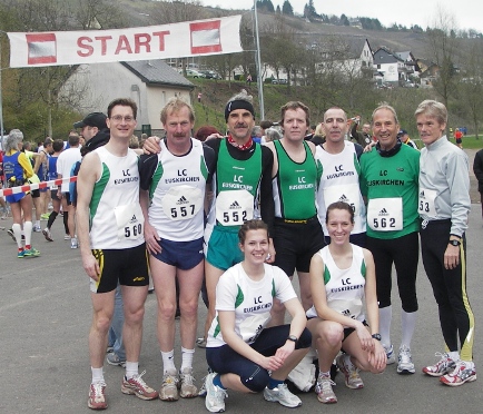 Der LC Euskirchen stellt mit Hans Schäfer den Sieger in der M60, Silke Völk wird zweite der Juniorinnen und Patrizia Ohst dritte. Patrizia Ohst und Martin Bergmann schaffen es sogar ihre Bestzeiten im Halbmarathon um 10 Minuten zu unterbieten. Gutes Training zahlt sich eben aus. Der LCE ist mannschaftlich geschlossen und zufrieden. | |